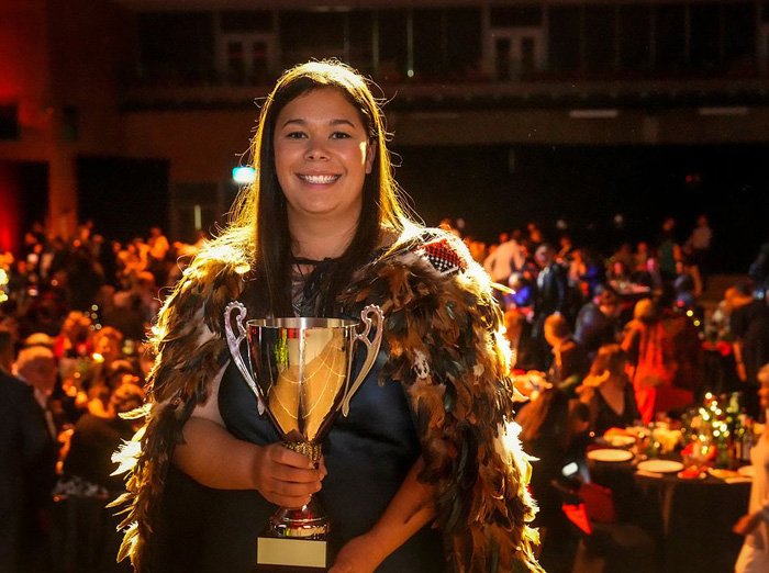 The other two finalists in the competition are: Alix Te Kere, Ngāti Kahungunu, Ngāti Tu, Ngāti Maru, and Ngāti Maniapoto. Alix Te Kere, 30, is the Health and Safety Advisor for Rockit Management Services. Erica Henare, Ngāti Kahungunu, Ngāti Maniapoto. Erica Henare, 27, is the Pipfruit and Kiwifruit Manager at Kono. This is the first time in the history of the competition that three wāhine Māori have been selected as finalists. To mark this special occasion each of the finalists received $5,000 each from Te Tumu Paeroa in addition to their other prizes.