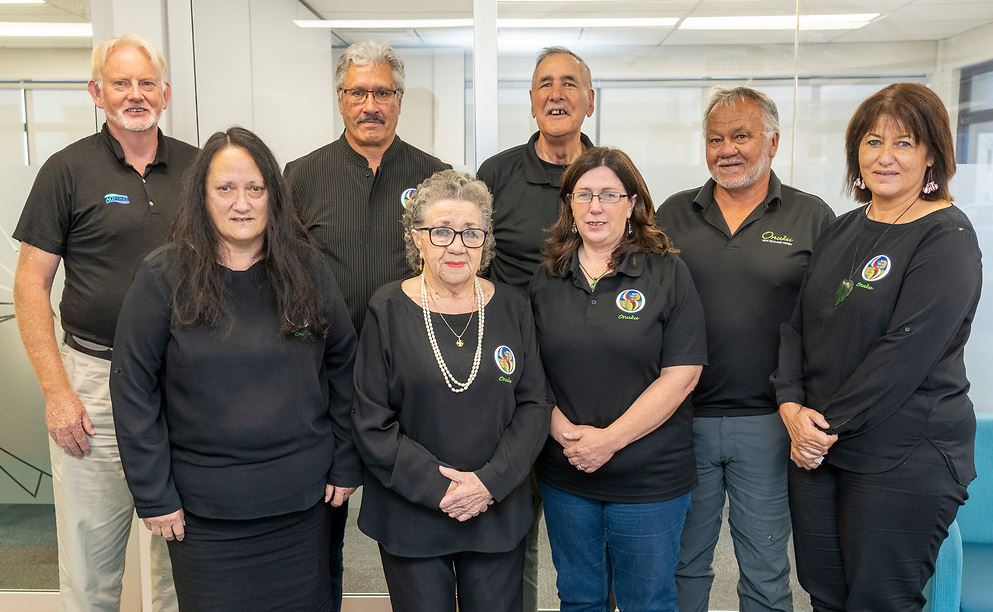In the photo: L-R: Peter Livingston, Maramena Vercoe, Barnett Vercoe, Moyra Bramley, Ken Raureti, Angela Wharekura, Les Stowell and Tina Ngatai.