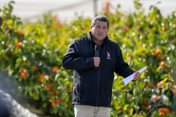 Guests were welcomed at Tangihanga Orchard, Wi Pere Trust’s blueberry, citrus and apple orchard, where they heard from members of the Wi Pere board and staff about the operation. This orchard had been badly damaged by Cyclone Gabrielle and as part of the presentation guests were shown a video of this.